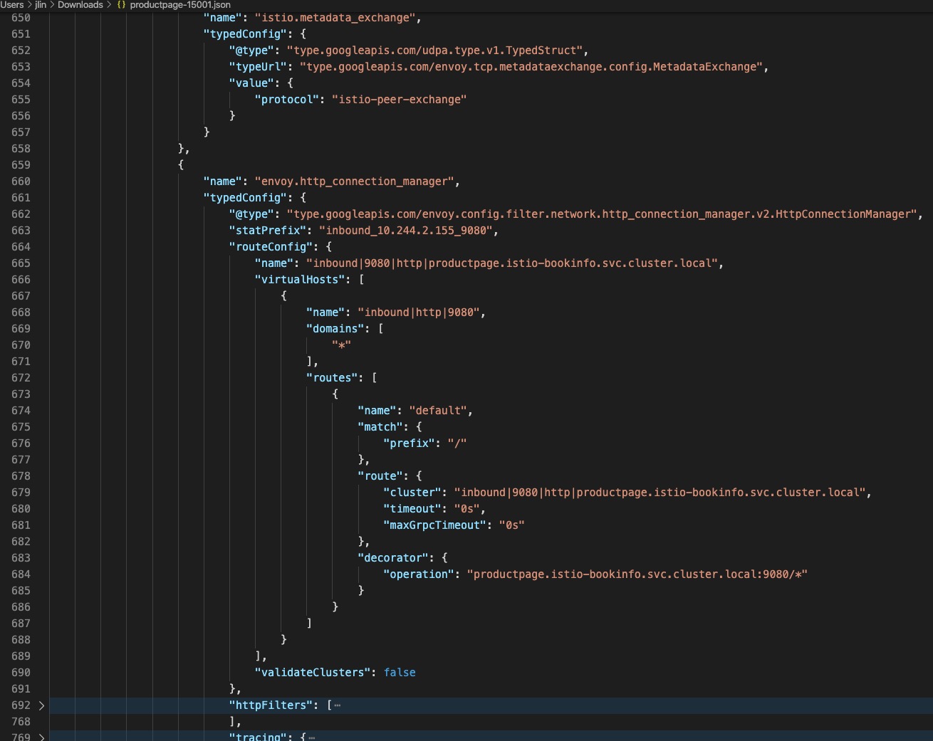 Although this is a dynamic configuration in the Istio environment, although there are ways to optimize it to reduce the actual configuration amount, or that we will not do such a large amount of configuration when using the static configuration method for configuration, but when we see the following actual The configuration structure output will feel that for such a software, it is obviously impractical to configure and maintain in a normal way. Its configuration is completely json structured and has a large number of descriptive configurations. Compared to NGINX and other such reverse For agent software, its configuration structure is too complicated.