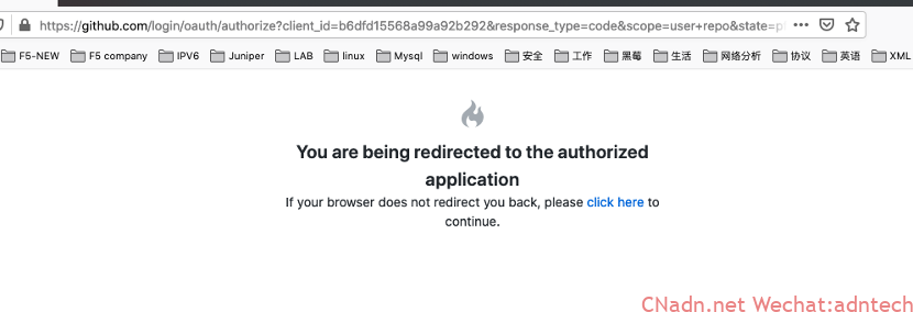 After clicking the authorization, the browser will continue to jump. The github implementation will have the following jump prompt, which is actually the browser to jump to the callback interface of vouch.imesh.club: